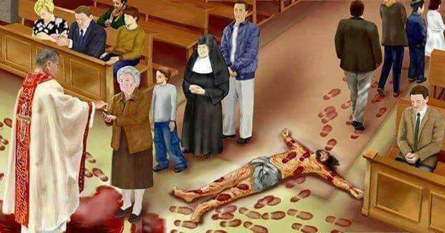 Diese bedeutet der ewige Tod. Dadurch wird Satan angebetet. Durch diese "Wandlung" hat Bergoglio den Satan auf die Hostie gerufen. So versucht er das Kommen des Antichristen vorzuziehen. Dazu missbraucht Bergoglio die Hl. Opfermesse und das Allerheiligste Altarsakrament, Jesus Christus!